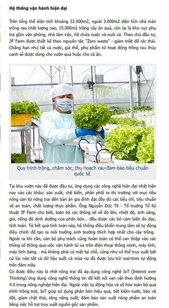 - Quảng bá trên Báo điện tử Khánh Hòa: các bài viết, tin tức về mô hình nông nghiệp sạch, sản phẩm rau thủy canh đạt chuẩn GLOBALG.A.P và hoạt động của 3F Family Farm đã được đăng tải trên cổng thông tin chính thống của tỉnh, góp phần lan tỏa hình ảnh nông sản sạch Diên Khánh đến đông đảo độc giả và đối tác trong và ngoài tỉnh.